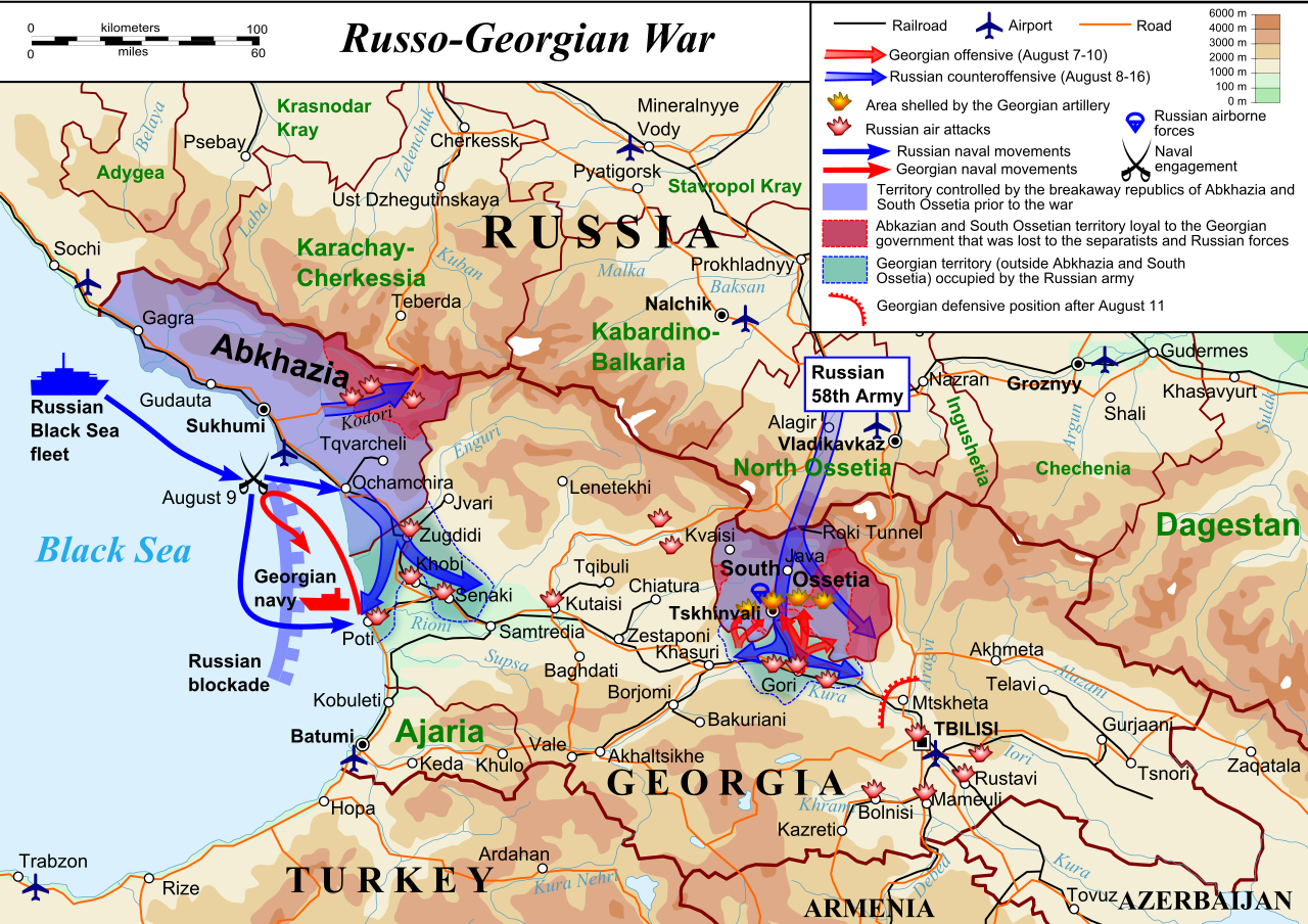 Mapa de la Guerra Ruso-Georgiana (2008) por Andrein en Wikipedia en inglés (CC BY-SA 3.0).