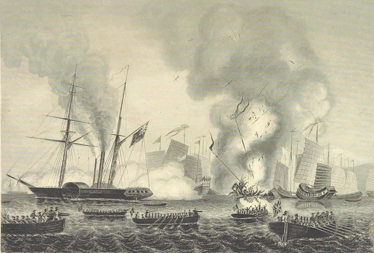 Némesis y otros barcos británicos que se enfrentan a la basura china en la Segunda Batalla de Chuenpi, el 7 de enero de 1841. El Némesis era un barco a vapor de la EIC.