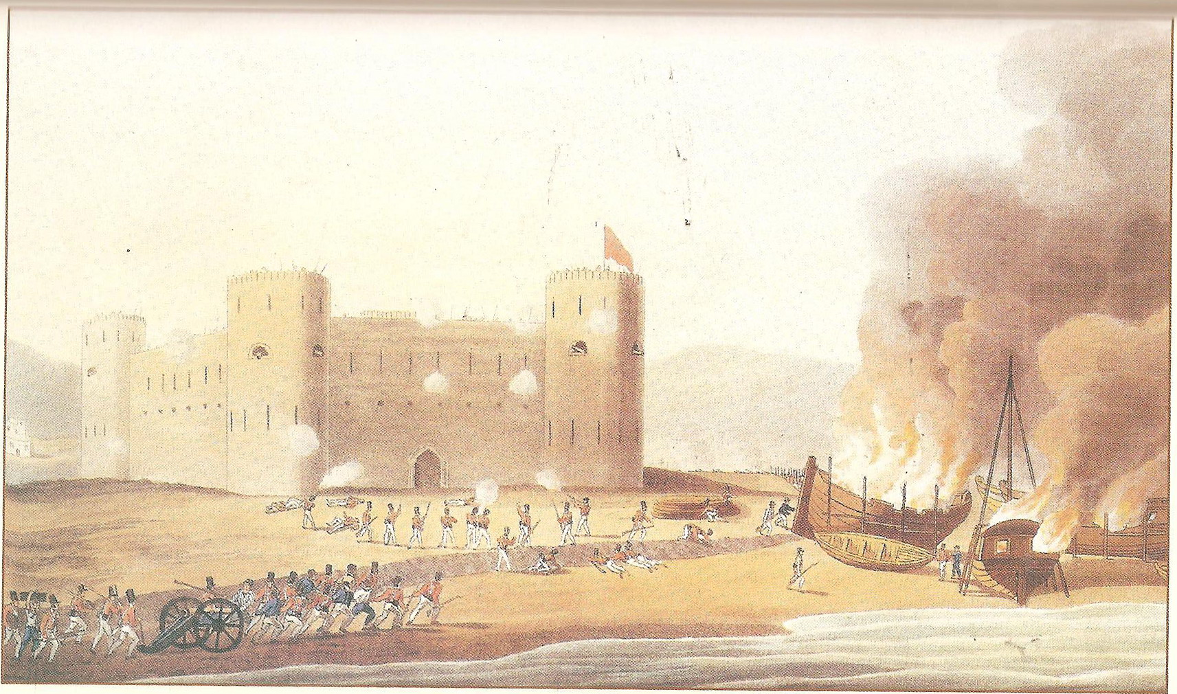 En 1820, tras la derrota de los Qawasim, y con la primera firma del conocido como Tratado General de 1820, el Gobierno Británico de Bombay impuso su autoridad en la zona (Qawasim y otros jeques) a través del puesto del Residente Político, primero en la isla de Qishm, en el estrecho de Ormuz, trasladándola luego más al norte. Al ser una zona tan amplia, el Residente Político tenía una serie de agentes políticos subordinados por el Golfo, uno de ellos estacionado en uno de los emiratos, el de Sharjah en 1923. El puesto era denominado “Native Agency”, y normalmente estaba al cargo de un indio nativo musulmán (Potts 2012, 179). Sus labores principales eran la protección de los intereses británicos en la zona, hacer cumplir los tratados, y mantener las mejores relaciones posibles con los líderes locales (Onley 2009, 4). Para hacer efectivo el control británico en la zona, el Gobierno de Bombay estableció la Escuadra del Golfo en el estrecho de Ormuz, que constaba de 5 a 7 buques, y a partir de 1860, al disponer de buques de vapor, de 2 a 4.