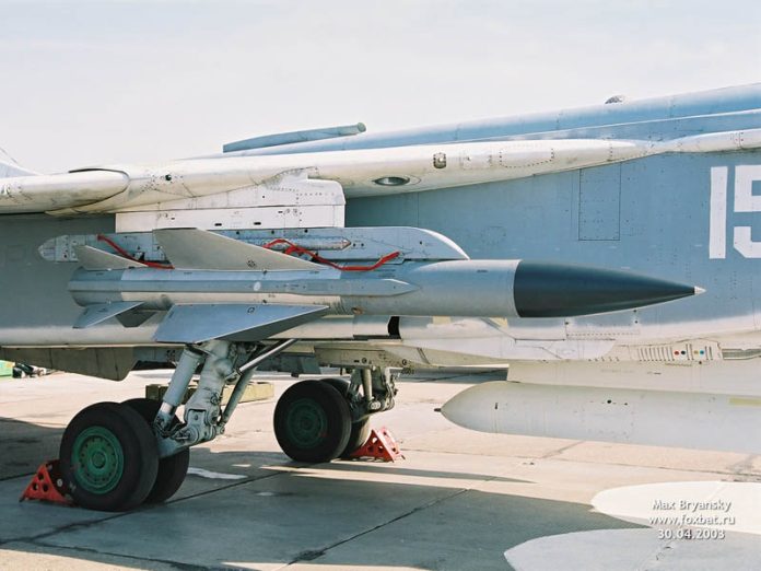 MiG-25RB, prototipo del Mig-25BM, armado para misiones SEAD con misiles Kh-58.